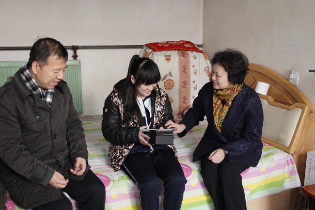 12月27日上午,镇党委书记李霞带领北京诚栋国际营地集成房屋有限公司董事长赵军勇等人前往师姑庄,看望其资助的弱听女孩田小雪,为其送去慰问金和新的助听器。