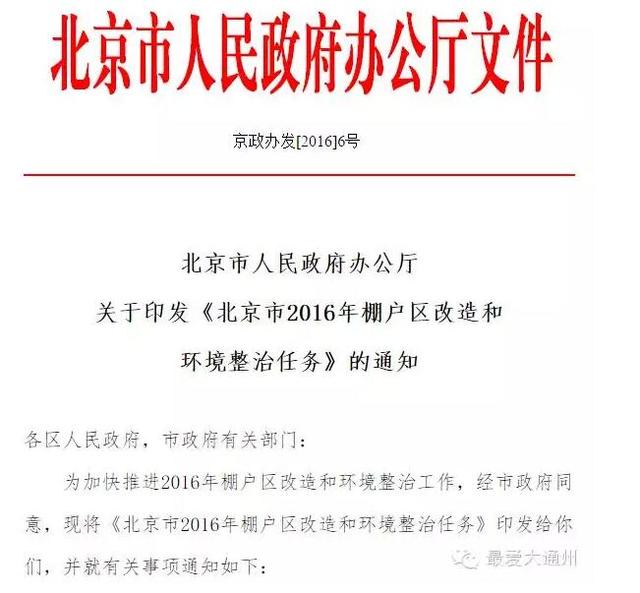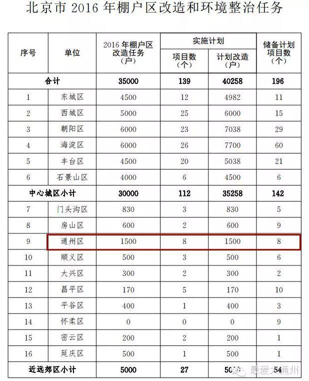 看到没,就是北京市2016年棚户区改造和环境整治任务,有咱通州好几个棚户改造任务: