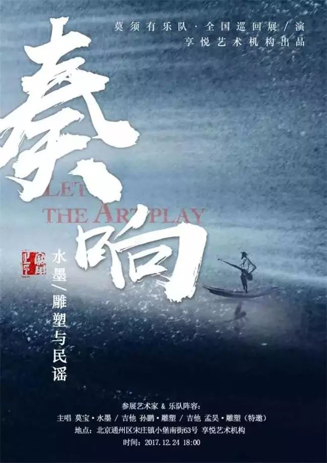 参展艺术家&乐队阵容:主唱莫宝·水墨/吉他孙鹏·雕塑/吉他孟吴·雕塑(特邀)