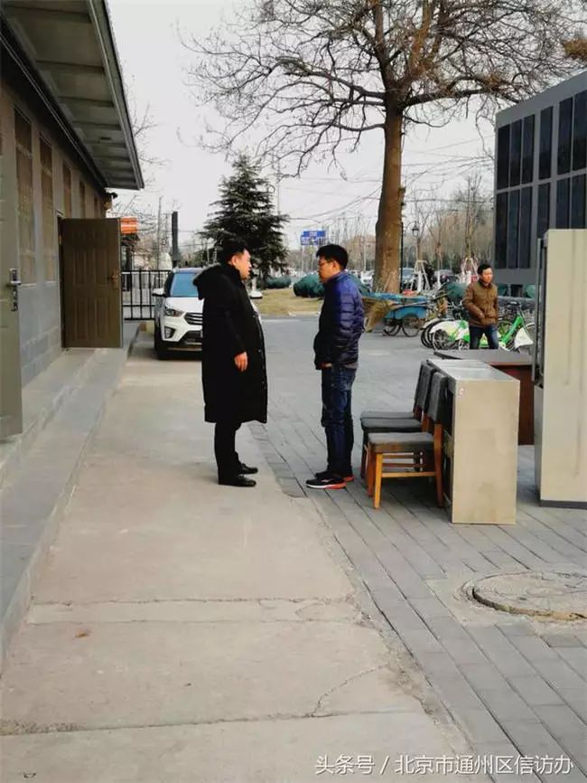 面对不愿意到信访接待室反映问题的信访人,宋庄镇信访办值班工作人员则在室外开始接待信访人。