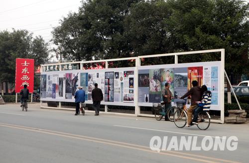 走进宋庄大牌楼,参观者可以看到位于艺术大道东侧的海报墙展示平台,上面展示着400多位宋庄艺术家的作品、生活状态以及艺术家工作室分布的地理位置、联系方式等。此次海报墙展示涉及内容非常广泛,有油画、国画、版画、雕塑、装置,还有影像和综合材料,基本囊括了大多数的艺术门类,充分展示了生活在宋庄的艺术家们当代性、原创性、前沿性和生态艺术特色,形象地体现出宋庄这面中国当代艺术的独特旗帜,也向外界展示出在宋庄这一快速发展中的文化产业聚集地拥有的丰富文化资源。